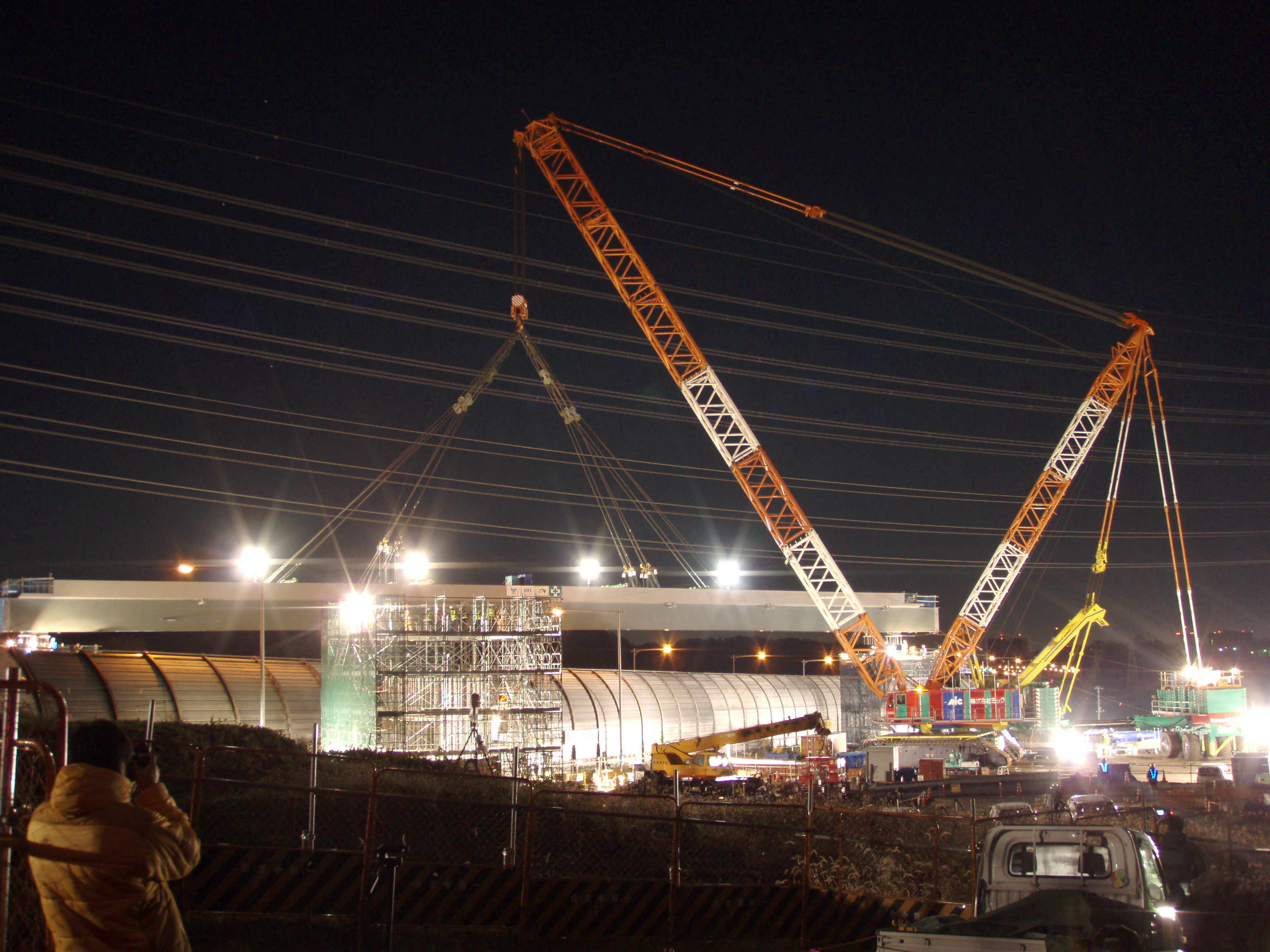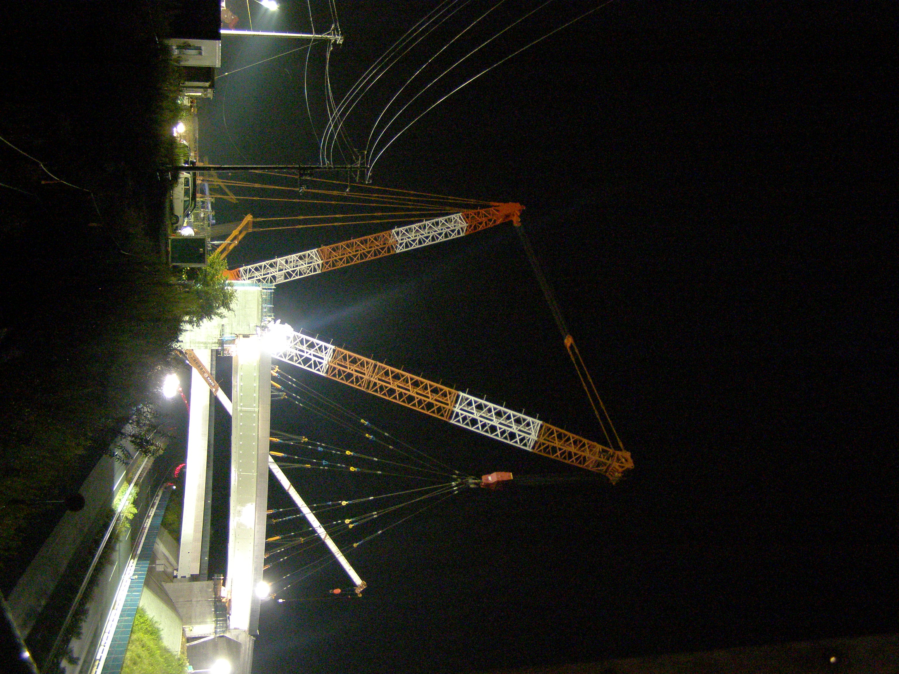 この13000の時は2晩連チャンでの架設だったので、調整しやすいようにシリンダーとチェンブロ併用だったのかもしれません。